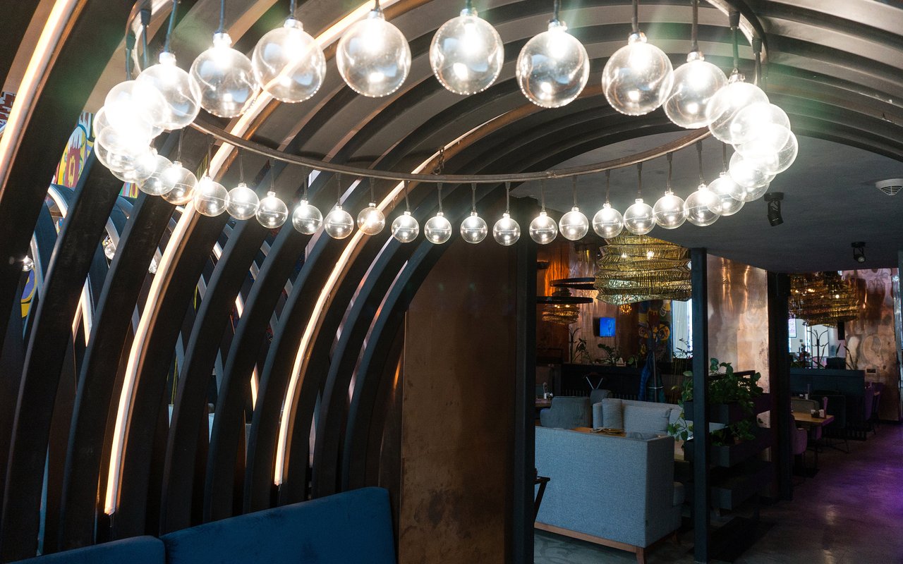 В самом заведении очень шумно, потому что все разговаривают повышенным тоном и с кухни долетают крики поворов, а все из за громкой неуместной музыки.