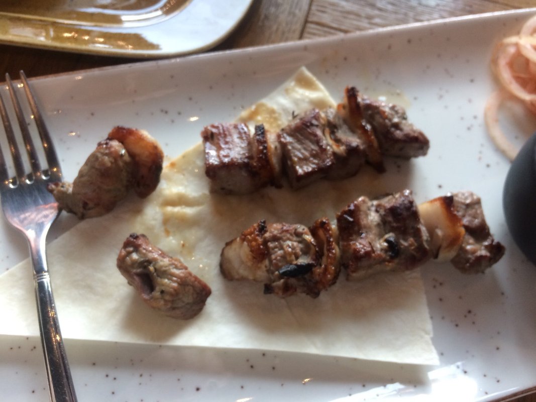 Раз в год приходим в этот ресторан отмечать день рождения. В последнее посещение заказывали столик на семь человек около окна. Очень нравится здесь обслуживание. Всегда вежливый персонал. Заказывали различные закуски и горячие блюда. Очень вкусным был мясо баранины на углях, сочное и свежеприготовленное. Играла фоновая музыка. И в самом ресторане уютно и комфортно.