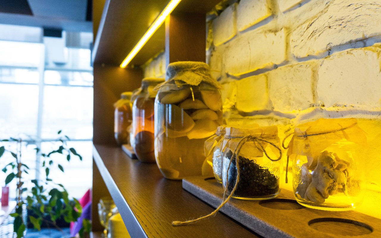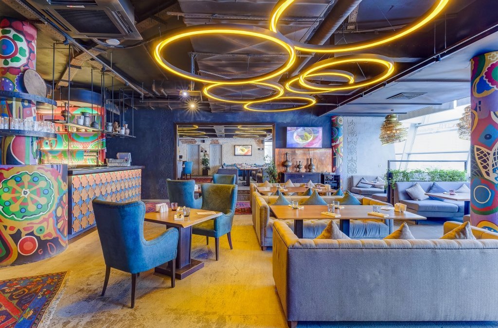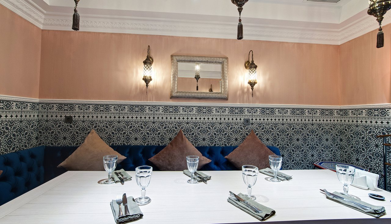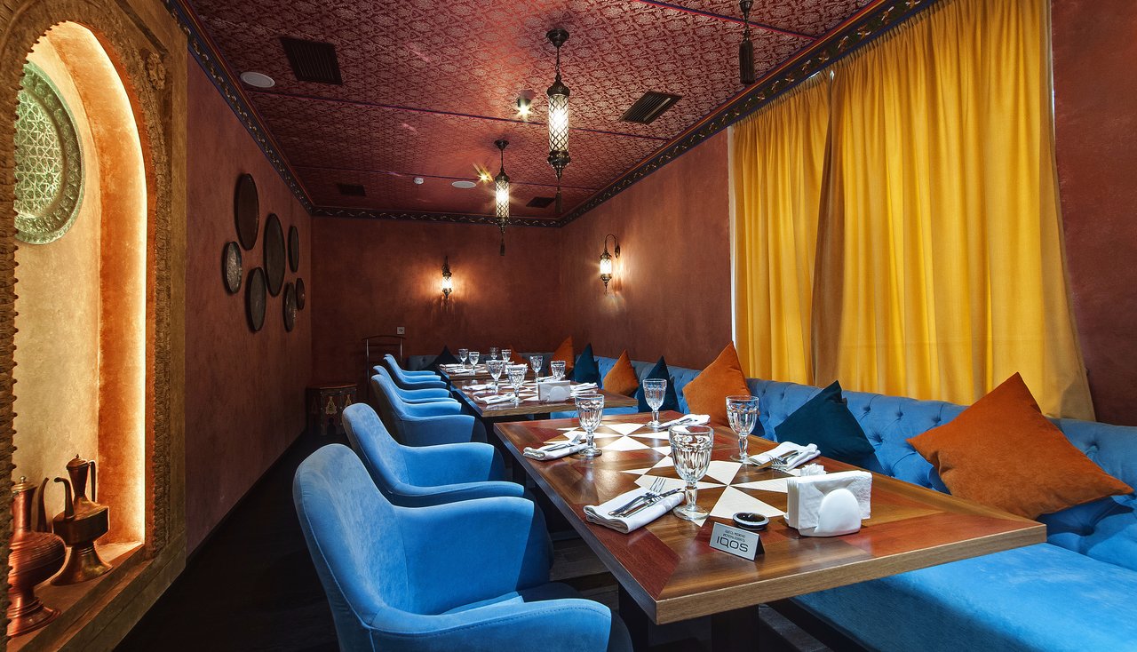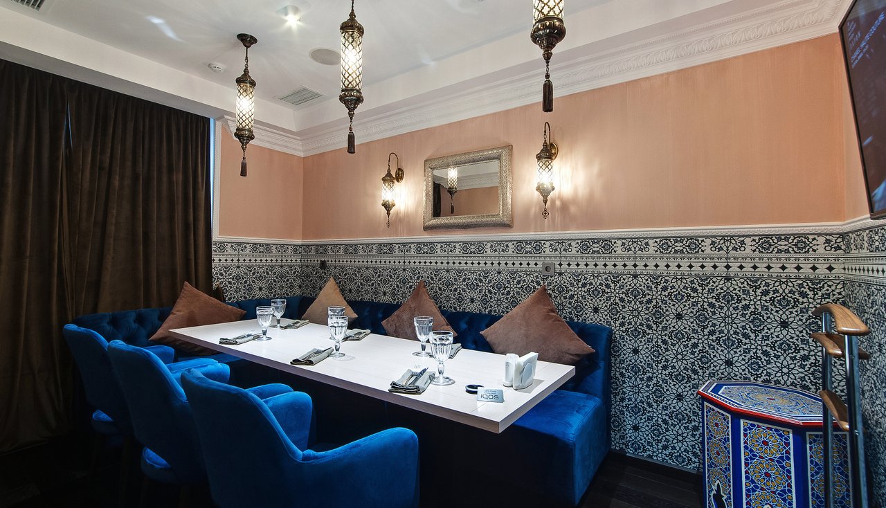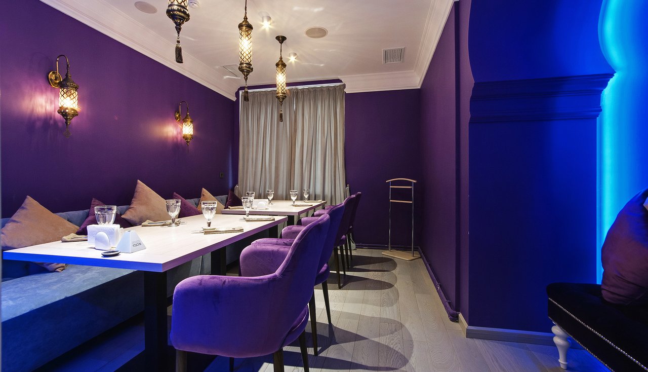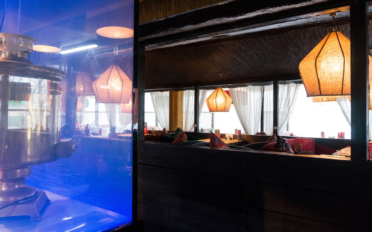 Проект "Урюк-кафе" задумывался владельцами, как место, где можно не только вкусно поесть, но и отдохнуть в максимально комфортной обстановке, позволяющей забыть о хлопотах и спешке мегаполиса. Надо признать, что им это отлично удалось. Как только попадаешь внутрь, тебя обволакивает теплом и ароматами кальяна и специй. В зале уютно, каждый стол отделяется легкими тканевыми занавесками. Устроившись на мягком диване в окружении ярких подушек, чувствуешь себя настоящей принцессой востока.